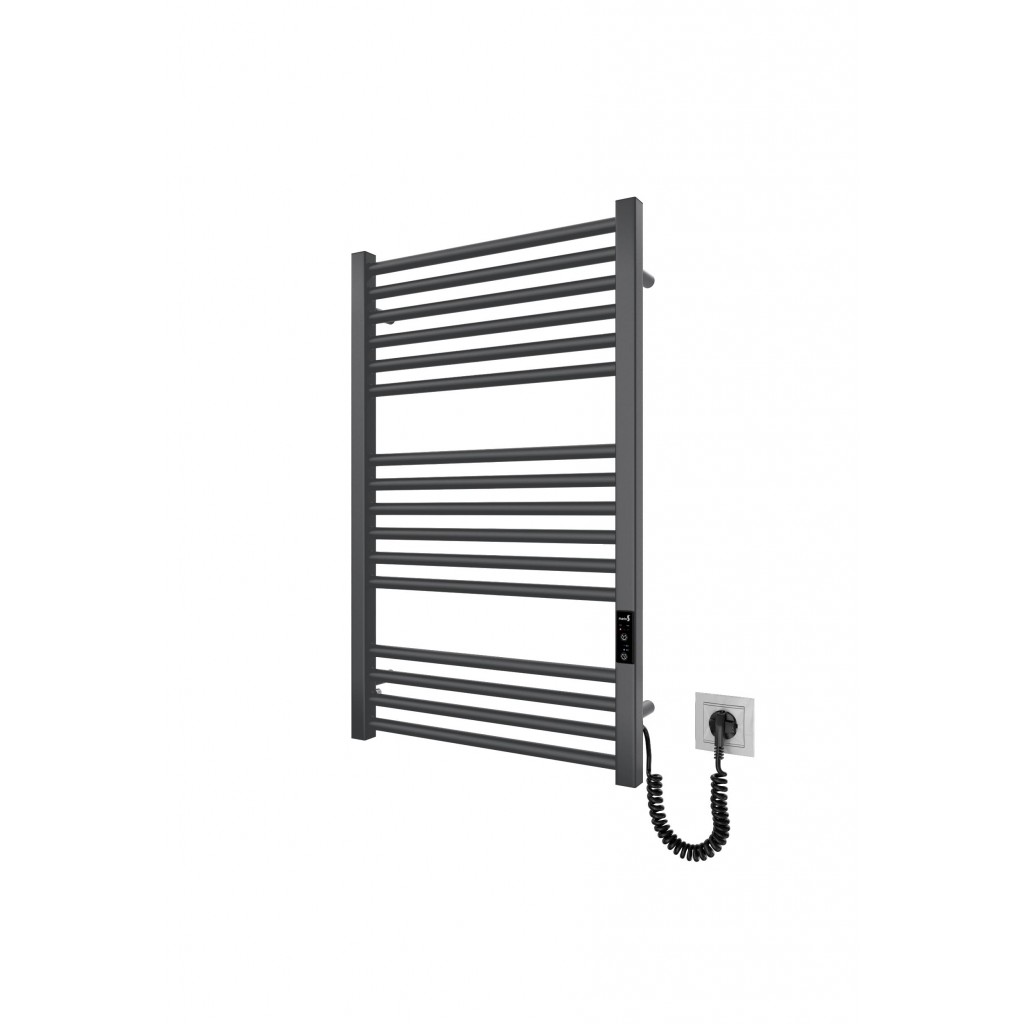 Бытовая электрическая полотенцесушилка Рушникосушка Гера-I 800х500/80 електр. TR К графіт. Оснащена таймер-регулятором и коннектором для подключения к розетке с любой стороны. Совместима с комплектом скрытого подключения. Имеет 16 перекладин и стойки. Изготовлена из полированной нержавеющей стали без хромирования. Температурные режимы таймер-регулятора: 40°С, 45°С, 50°С. Варианты времени работы: 3, 6 часов и постоянный нагрев. Мощность [3 Вт]. Для удобства использования можно дополнительно оснастить навесными крючками. Гарантия — .