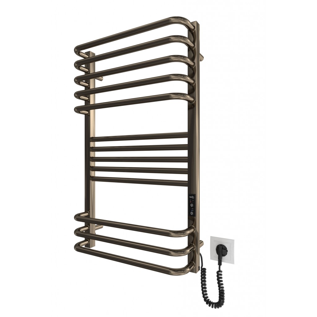 Бытовая электрическая полотенцесушилка Рушникосушка Гера-Люкс-I 800х500/170 електр. TR К бронза. Оснащена таймер-регулятором и коннектором для подключения к розетке с любой стороны. Совместима с комплектом скрытого подключения. Имеет 13 перекладин и стойки. Изготовлена из полированной нержавеющей стали без хромирования. Температурные режимы таймер-регулятора: 40°С, 45°С, 50°С. Варианты времени работы: 3, 6 часов и постоянный нагрев. Мощность [3 Вт]. Для удобства использования можно дополнительно оснастить навесными крючками. Гарантия — .