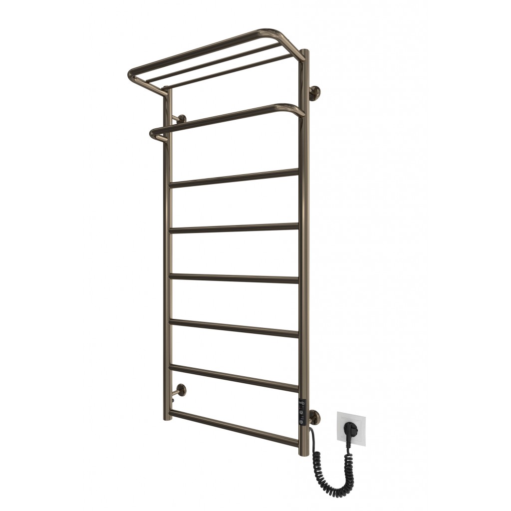 Бытовая электрическая полотенцесушилка Рушникосушка Hotel-І 1090х530/240 електр. TR К бронза. Оснащена таймер-регулятором и коннектором для подключения к розетке с любой стороны. Совместима с комплектом скрытого подключения. Имеет 8 перекладин и стойки. Изготовлена из полированной нержавеющей стали без хромирования. Температурные режимы таймер-регулятора: 40°С, 45°С, 50°С. Варианты времени работы: 3, 6 часов и постоянный нагрев. Мощность [3 Вт]. Для удобства использования можно дополнительно оснастить навесными крючками. Гарантия — .