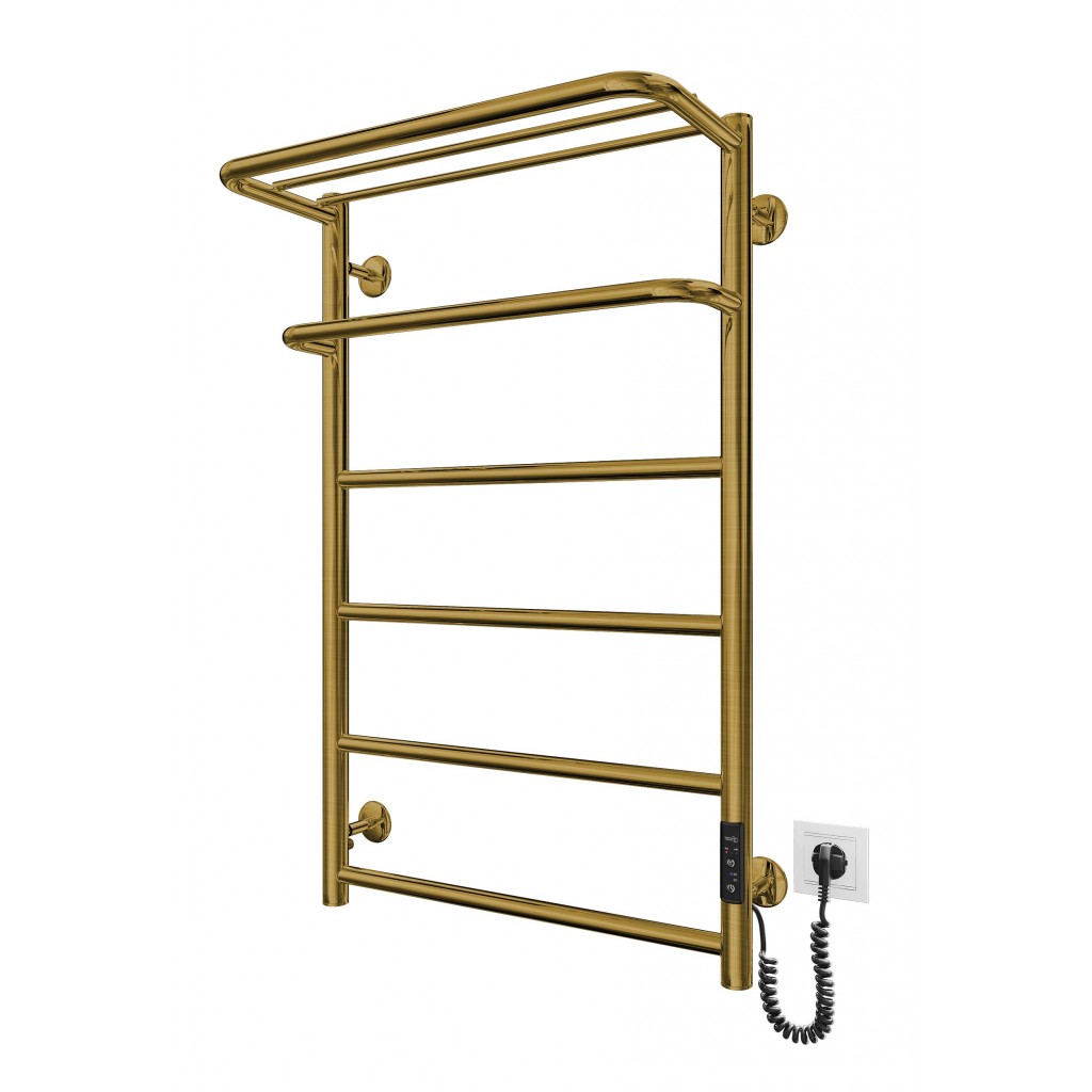 Бытовая электрическая полотенцесушилка Рушникосушка Hotel-І 800х530/240 електр. TR К золото сатин. Оснащена таймер-регулятором и коннектором для подключения к розетке с любой стороны. Совместима с комплектом скрытого подключения. Имеет 6 перекладин и стойки. Изготовлена из полированной нержавеющей стали без хромирования. Температурные режимы таймер-регулятора: 40°С, 45°С, 50°С. Варианты времени работы: 3, 6 часов и постоянный нагрев. Мощность [3 Вт]. Для удобства использования можно дополнительно оснастить навесными крючками. Гарантия — .