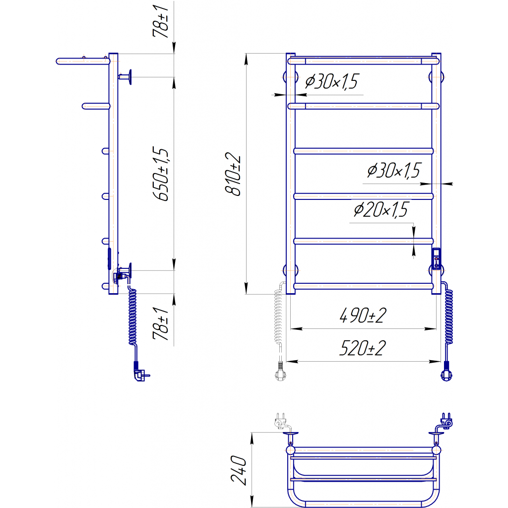 Бытовая электрическая полотенцесушилка Рушникосушка Hotel-І 800х530/240 електр. TR К білий мат. Оснащена таймер-регулятором и коннектором для подключения к розетке с любой стороны. Совместима с комплектом скрытого подключения. Имеет 6 перекладин и стойки. Изготовлена из полированной нержавеющей стали без хромирования. Температурные режимы таймер-регулятора: 40°С, 45°С, 50°С. Варианты времени работы: 3, 6 часов и постоянный нагрев. Мощность [3 Вт]. Для удобства использования можно дополнительно оснастить навесными крючками. Гарантия — .