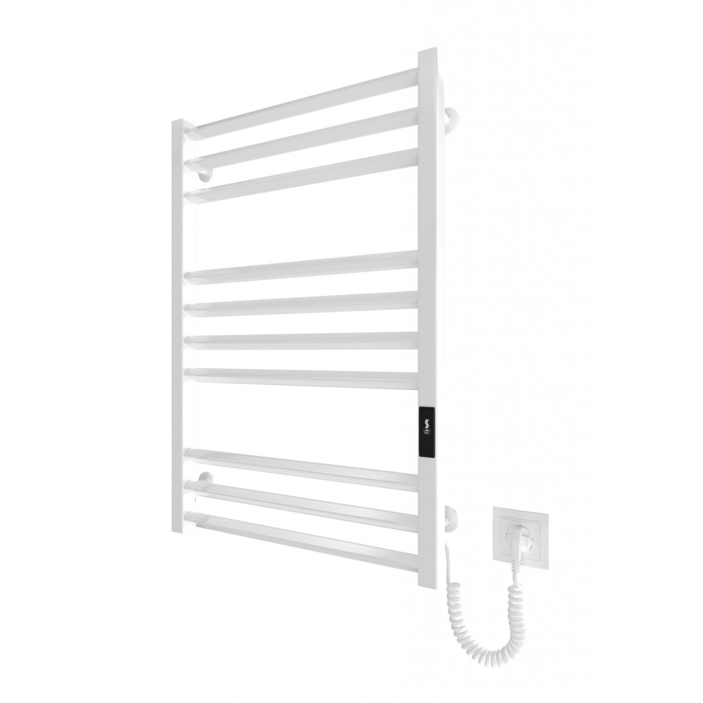 Бытовая электрическая полотенцесушилка Рушникосушка Кіото-I 770х530/80 TR К 2.0 білий глянець. Оснащена таймер-регулятором и коннектором для подключения к розетке с любой стороны. Совместима с комплектом скрытого подключения. Имеет 10 перекладин и стойки. Изготовлена из полированной нержавеющей стали без хромирования. Температурные режимы таймер-регулятора: 40°С, 45°С, 50°С. Варианты времени работы: 3, 6 часов и постоянный нагрев. Мощность [3 Вт]. Для удобства использования можно дополнительно оснастить навесными крючками. Гарантия — .