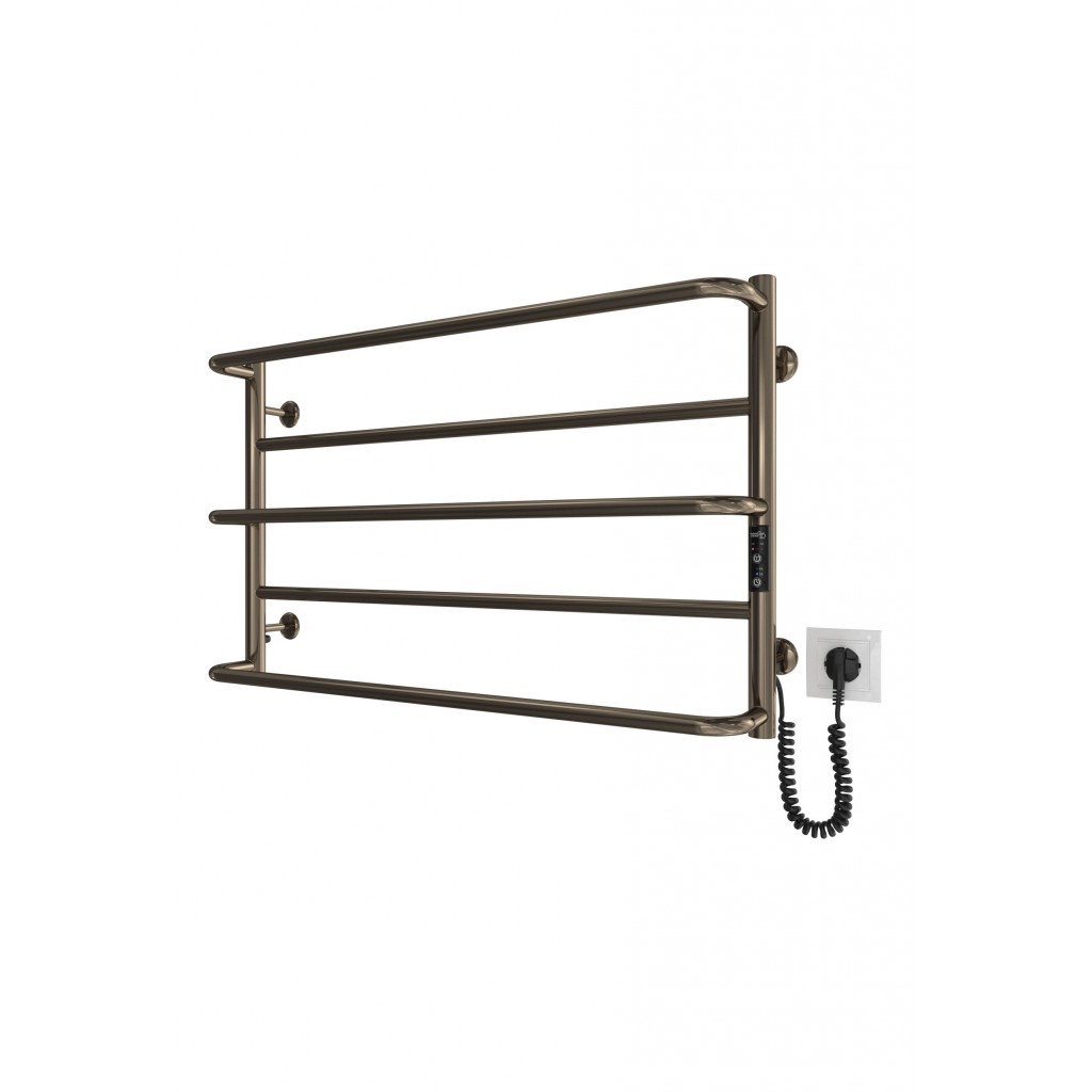 Бытовая электрическая полотенцесушилка Рушникосушка Люкс Сіті-І 500х830/150 електр. TR К бронза. Оснащена таймер-регулятором и коннектором для подключения к розетке с любой стороны. Совместима с комплектом скрытого подключения. Имеет 5 перекладин и стойки. Изготовлена из полированной нержавеющей стали без хромирования. Температурные режимы таймер-регулятора: 40°С, 45°С, 50°С. Варианты времени работы: 3, 6 часов и постоянный нагрев. Мощность [3 Вт]. Для удобства использования можно дополнительно оснастить навесными крючками. Гарантия — .