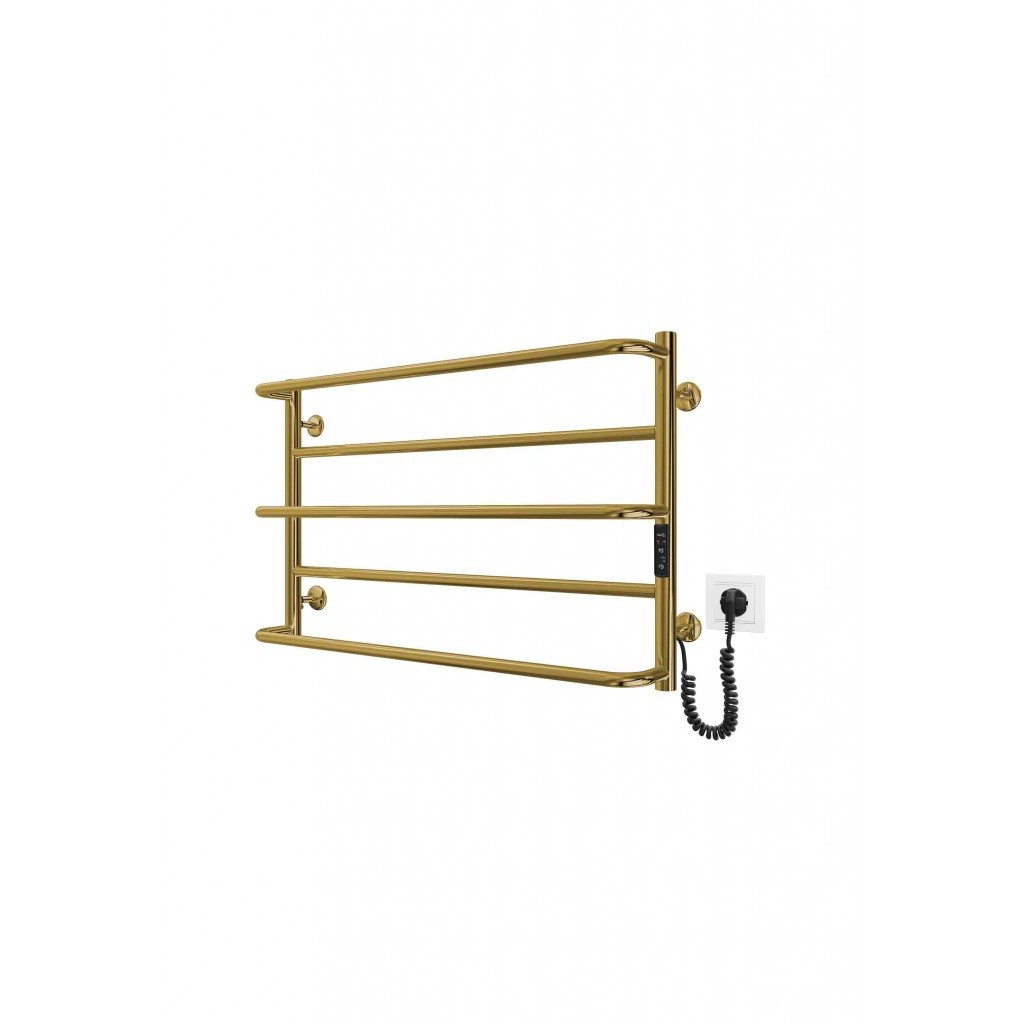 Бытовая электрическая полотенцесушилка Рушникосушка Люкс Сіті-І 500х830/150 електр. TR К золото. Оснащена таймер-регулятором и коннектором для подключения к розетке с любой стороны. Совместима с комплектом скрытого подключения. Имеет 5 перекладин и стойки. Изготовлена из полированной нержавеющей стали без хромирования. Температурные режимы таймер-регулятора: 40°С, 45°С, 50°С. Варианты времени работы: 3, 6 часов и постоянный нагрев. Мощность [3 Вт]. Для удобства использования можно дополнительно оснастить навесными крючками. Гарантия — .