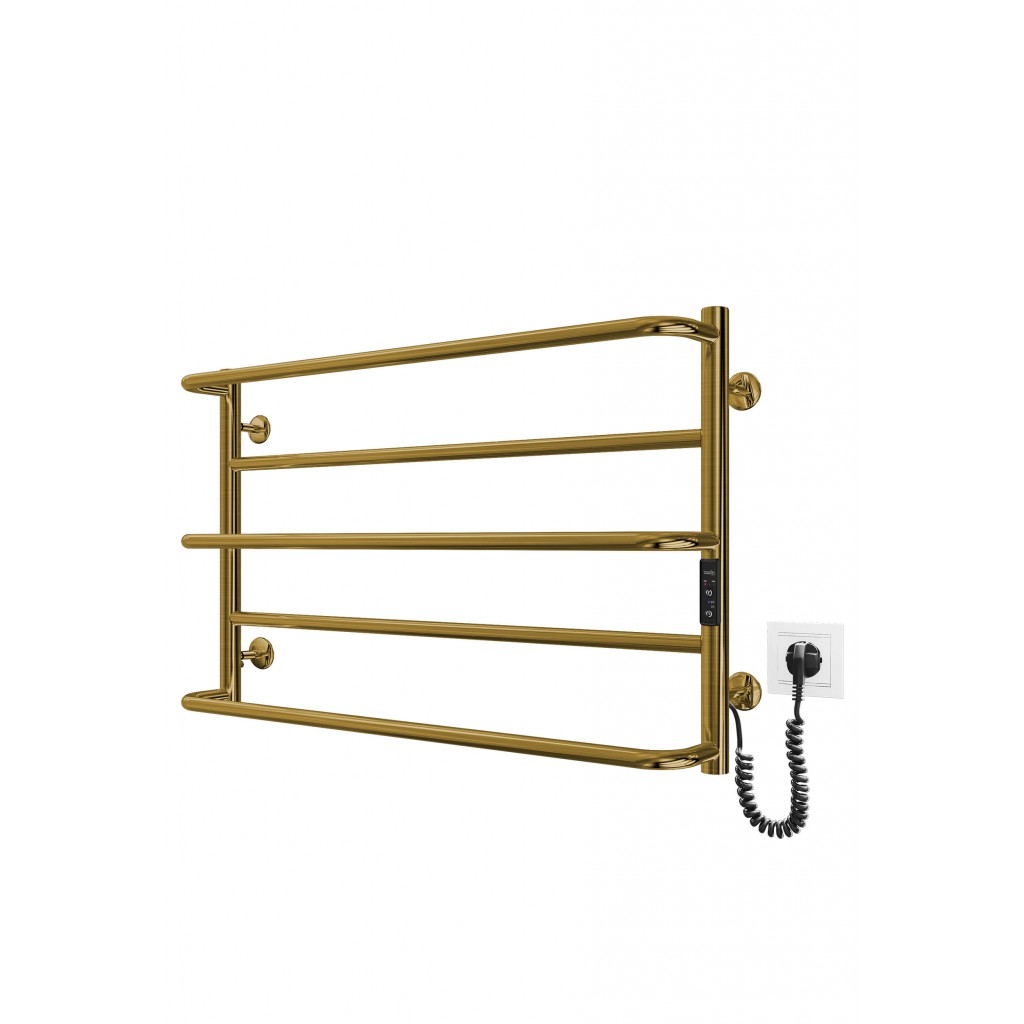 Бытовая электрическая полотенцесушилка Рушникосушка Люкс Сіті-І 500х830/150 електр. TR К золото сатин. Оснащена таймер-регулятором и коннектором для подключения к розетке с любой стороны. Совместима с комплектом скрытого подключения. Имеет 5 перекладин и стойки. Изготовлена из полированной нержавеющей стали без хромирования. Температурные режимы таймер-регулятора: 40°С, 45°С, 50°С. Варианты времени работы: 3, 6 часов и постоянный нагрев. Мощность [3 Вт]. Для удобства использования можно дополнительно оснастить навесными крючками. Гарантия — .