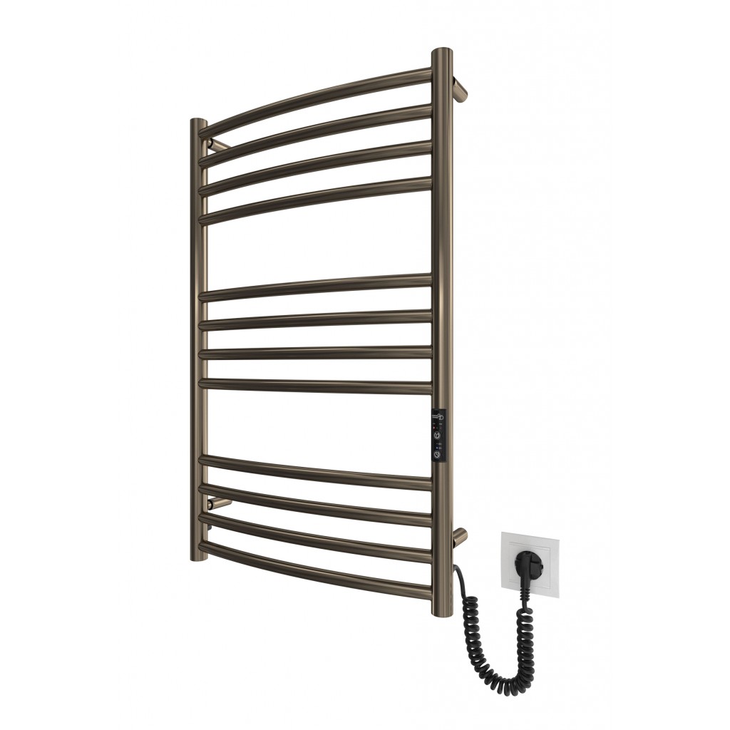 Бытовая электрическая полотенцесушилка Рушникосушка Фенікс-I 830х500/100 електр. TR К бронза. Оснащена таймер-регулятором и коннектором для подключения к розетке с любой стороны. Совместима с комплектом скрытого подключения. Имеет 13 перекладин и стойки. Изготовлена из полированной нержавеющей стали без хромирования. Температурные режимы таймер-регулятора: 40°С, 45°С, 50°С. Варианты времени работы: 3, 6 часов и постоянный нагрев. Мощность [3 Вт]. Для удобства использования можно дополнительно оснастить навесными крючками. Гарантия — .