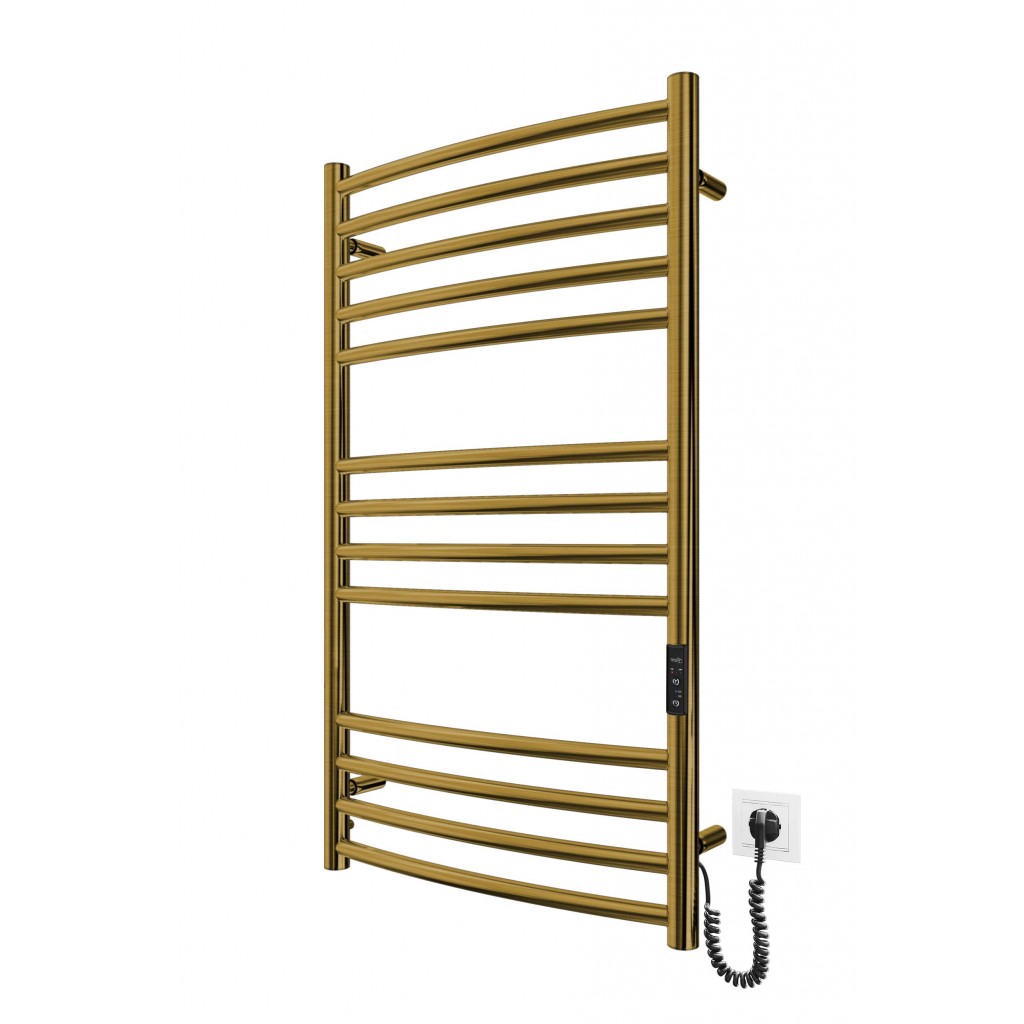 Бытовая электрическая полотенцесушилка Рушникосушка Фенікс-I 830х500/100 електр. TR К золото сатин. Оснащена таймер-регулятором и коннектором для подключения к розетке с любой стороны. Совместима с комплектом скрытого подключения. Имеет 13 перекладин и стойки. Изготовлена из полированной нержавеющей стали без хромирования. Температурные режимы таймер-регулятора: 40°С, 45°С, 50°С. Варианты времени работы: 3, 6 часов и постоянный нагрев. Мощность [3 Вт]. Для удобства использования можно дополнительно оснастить навесными крючками. Гарантия — .