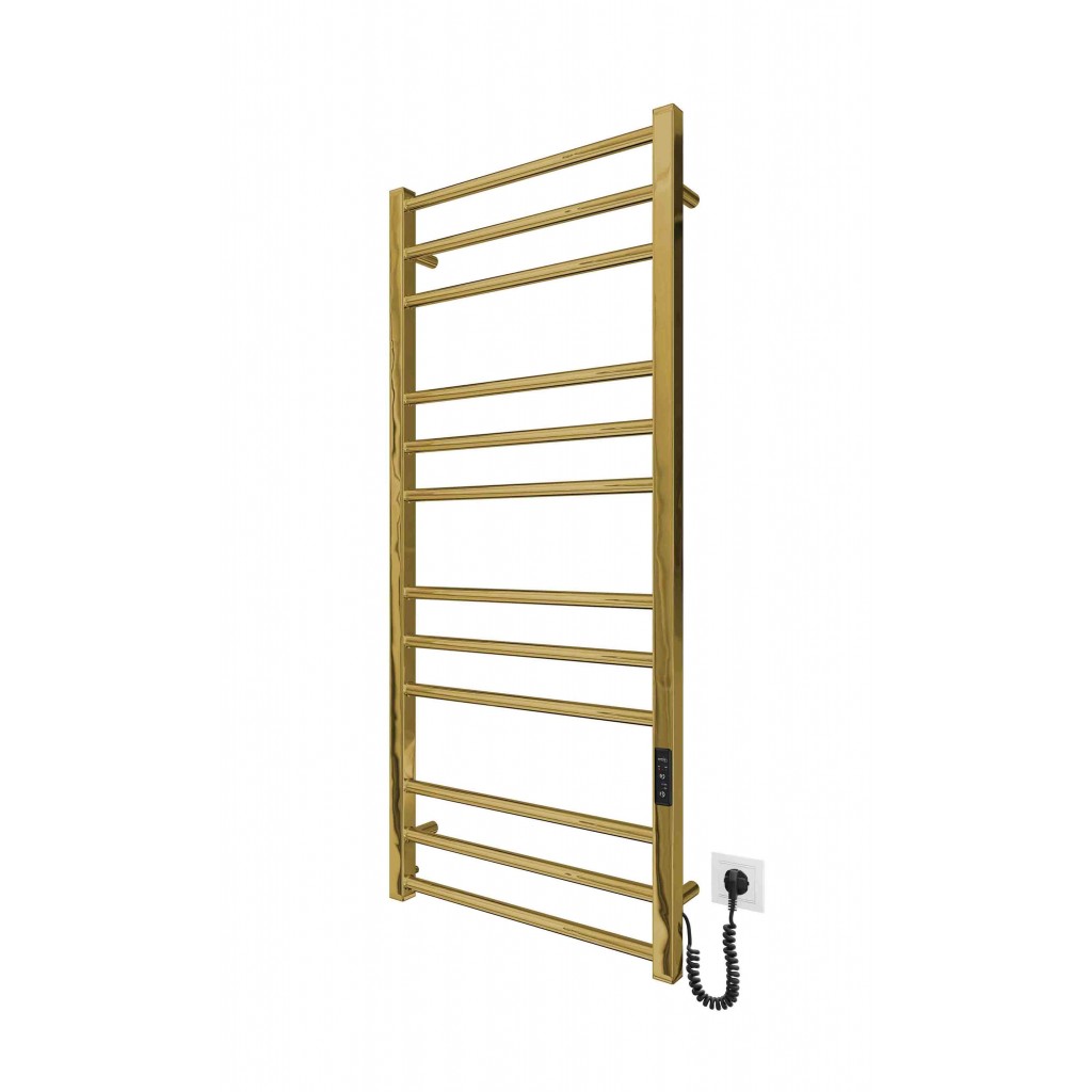 Бытовая электрическая полотенцесушилка Рушникосушка Преміум Класік-I 1100х500/80 електр. TR К золото. Оснащена таймер-регулятором и коннектором для подключения к розетке с любой стороны. Совместима с комплектом скрытого подключения. Имеет 12 перекладин и стойки. Изготовлена из полированной нержавеющей стали без хромирования. Температурные режимы таймер-регулятора: 40°С, 45°С, 50°С. Варианты времени работы: 3, 6 часов и постоянный нагрев. Мощность [3 Вт]. Для удобства использования можно дополнительно оснастить навесными крючками. Гарантия — .