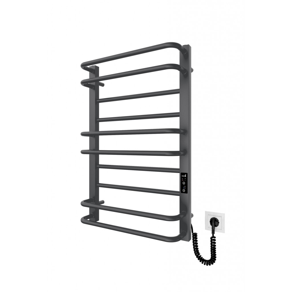 Бытовая электрическая полотенцесушилка Рушникосушка Преміум Люкс-I 800х500/170 електр. TR К графіт. Оснащена таймер-регулятором и коннектором для подключения к розетке с любой стороны. Совместима с комплектом скрытого подключения. Имеет 10 перекладин и стойки. Изготовлена из полированной нержавеющей стали без хромирования. Температурные режимы таймер-регулятора: 40°С, 45°С, 50°С. Варианты времени работы: 3, 6 часов и постоянный нагрев. Мощность [3 Вт]. Для удобства использования можно дополнительно оснастить навесными крючками. Гарантия — .