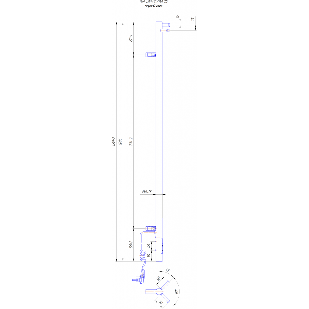 Бытовая электрическая полотенцесушилка Рушникосушка Рей-І 1100х30/130 електр. TR чорний мат. Оснащена таймер-регулятором и коннектором для подключения к розетке с любой стороны. Совместима с комплектом скрытого подключения. Имеет 1 перекладин и стойки. Изготовлена из полированной нержавеющей стали без хромирования. Температурные режимы таймер-регулятора: 40°С, 45°С, 50°С. Варианты времени работы: 3, 6 часов и постоянный нагрев. Мощность [3 Вт]. Для удобства использования можно дополнительно оснастить навесными крючками. Гарантия — .