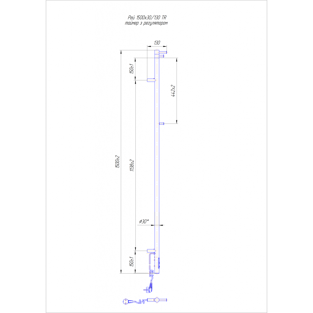 Бытовая электрическая полотенцесушилка Рушникосушка Рей 1500х30/130 електр. TR. Оснащена таймер-регулятором и коннектором для подключения к розетке с любой стороны. Совместима с комплектом скрытого подключения. Имеет 1 перекладин и стойки. Изготовлена из полированной нержавеющей стали без хромирования. Температурные режимы таймер-регулятора: 40°С, 45°С, 50°С. Варианты времени работы: 3, 6 часов и постоянный нагрев. Мощность [3 Вт]. Для удобства использования можно дополнительно оснастить навесными крючками. Гарантия — 60 месяцев.