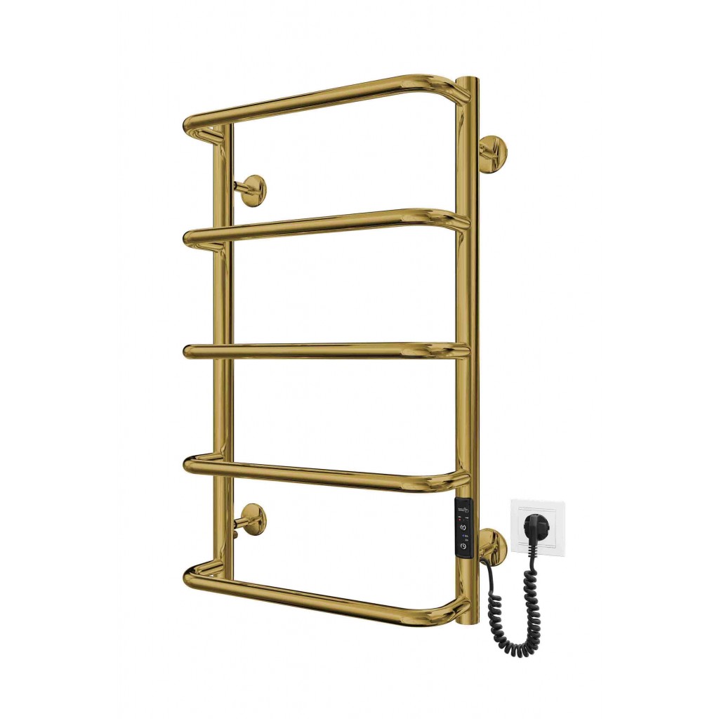 Бытовая электрическая полотенцесушилка Рушникосушка Стандарт НР-І 650х430/150 електр. TR К золото. Оснащена таймер-регулятором и коннектором для подключения к розетке с любой стороны. Совместима с комплектом скрытого подключения. Имеет 5 перекладин и стойки. Изготовлена из полированной нержавеющей стали без хромирования. Температурные режимы таймер-регулятора: 40°С, 45°С, 50°С. Варианты времени работы: 3, 6 часов и постоянный нагрев. Мощность [3 Вт]. Для удобства использования можно дополнительно оснастить навесными крючками. Гарантия — .
