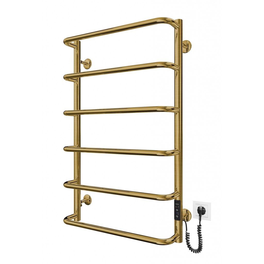 Бытовая электрическая полотенцесушилка Рушникосушка Стандарт НР-І 800х530/150 електр. TR К золото сатин. Оснащена таймер-регулятором и коннектором для подключения к розетке с любой стороны. Совместима с комплектом скрытого подключения. Имеет 6 перекладин и стойки. Изготовлена из полированной нержавеющей стали без хромирования. Температурные режимы таймер-регулятора: 40°С, 45°С, 50°С. Варианты времени работы: 3, 6 часов и постоянный нагрев. Мощность [3 Вт]. Для удобства использования можно дополнительно оснастить навесными крючками. Гарантия — .