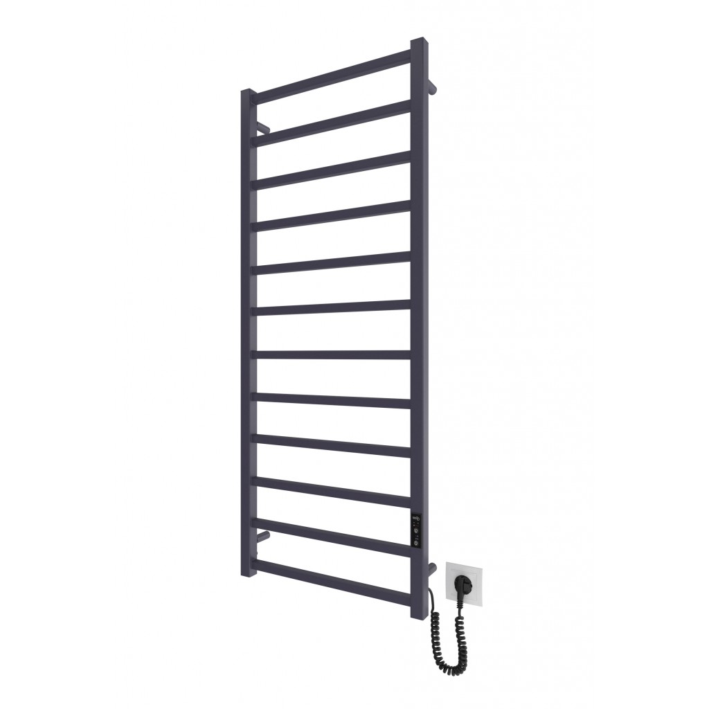 Бытовая электрическая полотенцесушилка Рушникосушка Токіо-I 1200x500/80 TR К графіт. Оснащена таймер-регулятором и коннектором для подключения к розетке с любой стороны. Совместима с комплектом скрытого подключения. Имеет 12 перекладин и стойки. Изготовлена из полированной нержавеющей стали без хромирования. Температурные режимы таймер-регулятора: 40°С, 45°С, 50°С. Варианты времени работы: 3, 6 часов и постоянный нагрев. Мощность [3 Вт]. Для удобства использования можно дополнительно оснастить навесными крючками. Гарантия — .