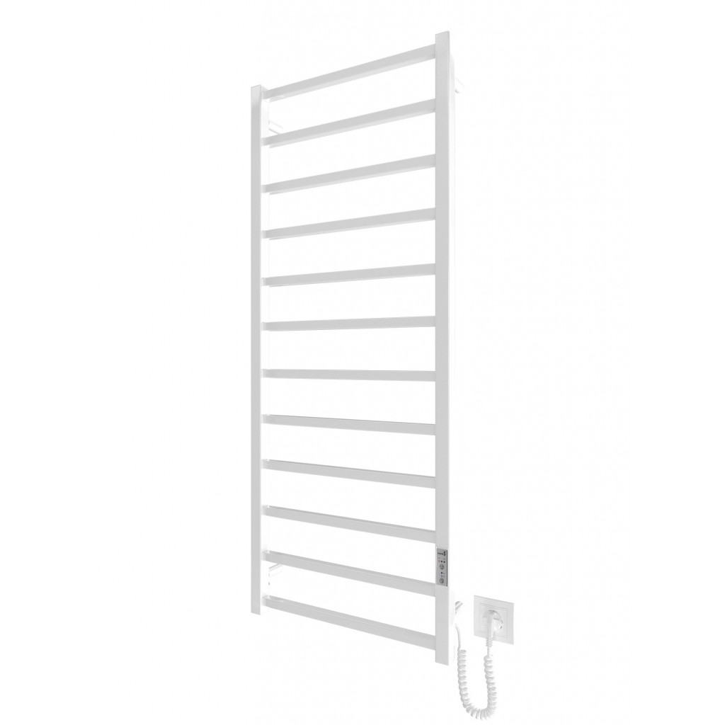 Бытовая электрическая полотенцесушилка Рушникосушка Токіо-I 1200х500/80 TR К білий мат. Оснащена таймер-регулятором и коннектором для подключения к розетке с любой стороны. Совместима с комплектом скрытого подключения. Имеет 12 перекладин и стойки. Изготовлена из полированной нержавеющей стали без хромирования. Температурные режимы таймер-регулятора: 40°С, 45°С, 50°С. Варианты времени работы: 3, 6 часов и постоянный нагрев. Мощность [3 Вт]. Для удобства использования можно дополнительно оснастить навесными крючками. Гарантия — .