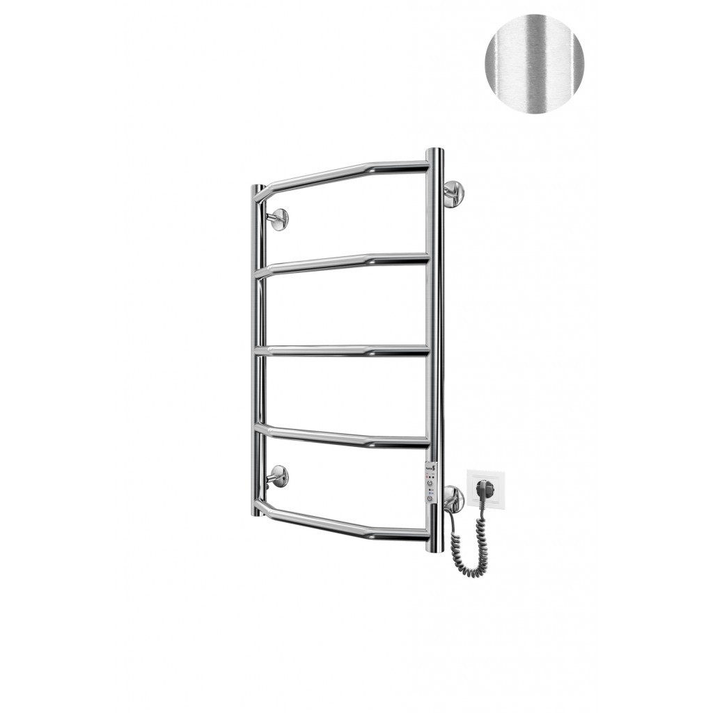 Бытовая электрическая полотенцесушилка Рушникосушка Трапеція НР-І 650х430/110 електр. TR К покриття сатин. Оснащена таймер-регулятором и коннектором для подключения к розетке с любой стороны. Совместима с комплектом скрытого подключения. Имеет 5 перекладин и стойки. Изготовлена из полированной нержавеющей стали без хромирования. Температурные режимы таймер-регулятора: 40°С, 45°С, 50°С. Варианты времени работы: 3, 6 часов и постоянный нагрев. Мощность [3 Вт]. Для удобства использования можно дополнительно оснастить навесными крючками. Гарантия — .