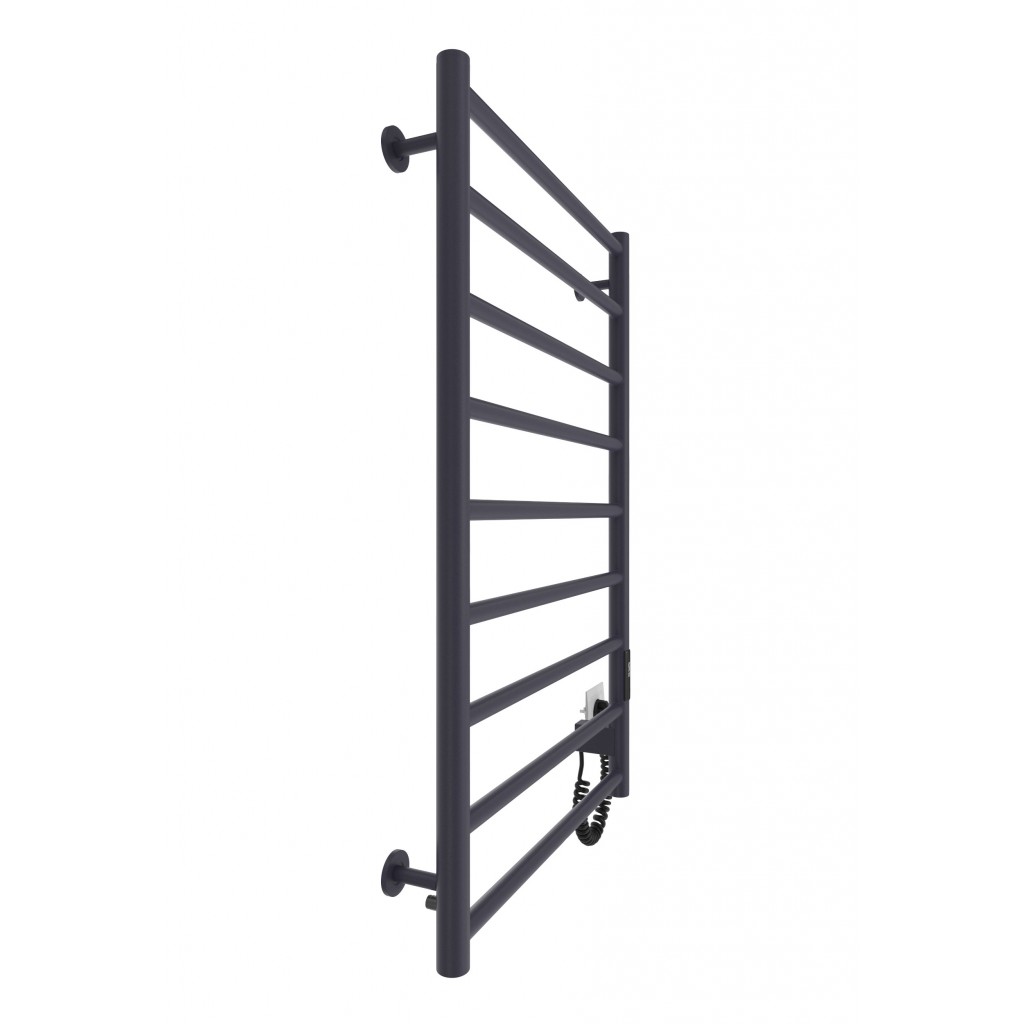 Бытовая электрическая полотенцесушилка Рушникосушка Урбан-I 810x500/85 TR К графіт. Оснащена таймер-регулятором и коннектором для подключения к розетке с любой стороны. Совместима с комплектом скрытого подключения. Имеет 9 перекладин и стойки. Изготовлена из полированной нержавеющей стали без хромирования. Температурные режимы таймер-регулятора: 40°С, 45°С, 50°С. Варианты времени работы: 3, 6 часов и постоянный нагрев. Мощность [3 Вт]. Для удобства использования можно дополнительно оснастить навесными крючками. Гарантия — .