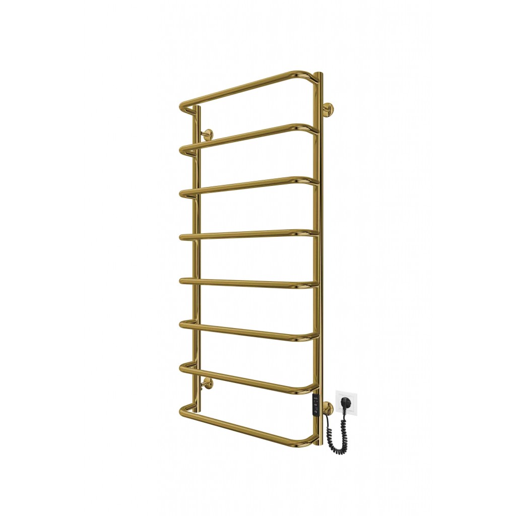 Електросушарка для рушників побутова Стандарт НР-І 1090х530/150 TR К золото. Обладнана таймер-регулятором. Сумісна з комплектом прихованого підключення. Виготовлена з полірованої нержавіючої сталі. Варіанти покриття: полірована, сатин, чорний мат. Температурні режими таймер-регулятора: 40°С, 45°С, 50°С. Варіанти часу роботи: 3, 6 годин та постійний нагрів. Потужність 135.0 Вт. Гарантія - 20 років на корпус / 5 років на електричну частину/ 2 роки на покриття.