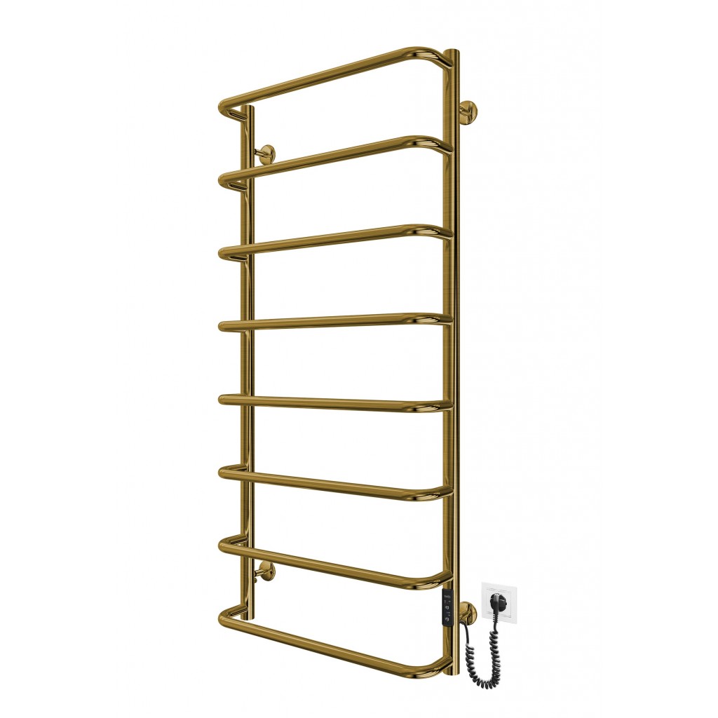 Електросушарка для рушників побутова Стандарт НР-І 1090х530/150 TR К золото сатин. Обладнана таймер-регулятором. Сумісна з комплектом прихованого підключення. Виготовлена з полірованої нержавіючої сталі. Варіанти покриття: полірована, сатин, чорний мат. Температурні режими таймер-регулятора: 40°С, 45°С, 50°С. Варіанти часу роботи: 3, 6 годин та постійний нагрів. Потужність 135.0 Вт. Гарантія - 20 років на корпус / 5 років на електричну частину/ 2 роки на покриття.