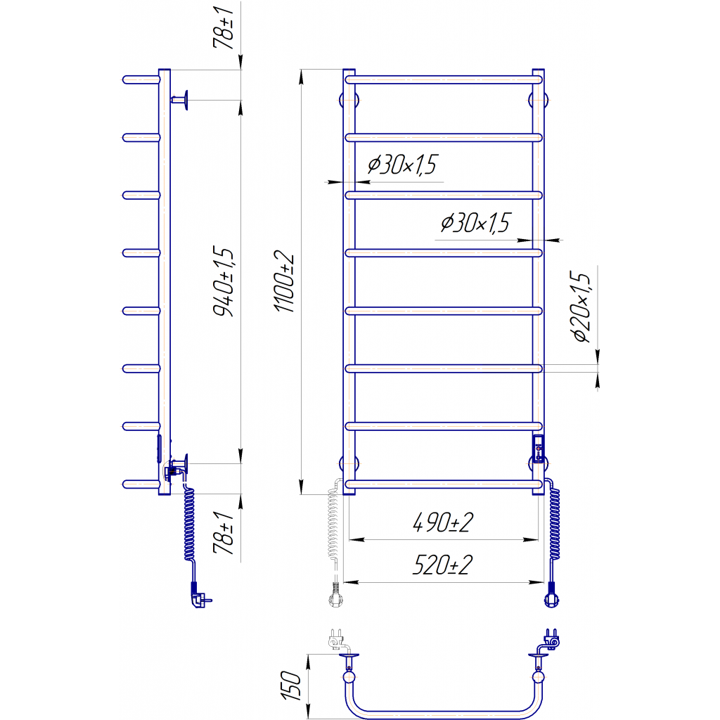 Електросушарка для рушників побутова Стандарт НР-І 1090х530/150 TR К білий глянець. Обладнана таймер-регулятором. Сумісна з комплектом прихованого підключення. Виготовлена з полірованої нержавіючої сталі. Варіанти покриття: полірована, сатин, чорний мат. Температурні режими таймер-регулятора: 40°С, 45°С, 50°С. Варіанти часу роботи: 3, 6 годин та постійний нагрів. Потужність 135.0 Вт. Гарантія - 20 років на корпус / 5 років на електричну частину/ 2 роки на покриття.