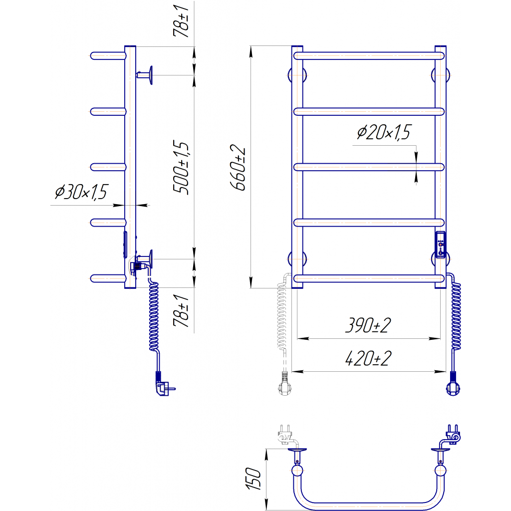 Електросушарка для рушників побутова Стандарт НР-І 650х430/150 TR К білий глянець. Обладнана таймер-регулятором. Сумісна з комплектом прихованого підключення. Виготовлена з полірованої нержавіючої сталі. Варіанти покриття: полірована, сатин, чорний мат. Температурні режими таймер-регулятора: 40°С, 45°С, 50°С. Варіанти часу роботи: 3, 6 годин та постійний нагрів. Потужність 75.0 Вт. Гарантія - 20 років на корпус / 5 років на електричну частину/ 2 роки на покриття.