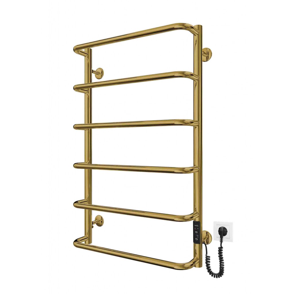 Електросушарка для рушників побутова Стандарт НР-І 800х530/150 TR К золото. Обладнана таймер-регулятором. Сумісна з комплектом прихованого підключення. Виготовлена з полірованої нержавіючої сталі. Варіанти покриття: полірована, сатин, чорний мат. Температурні режими таймер-регулятора: 40°С, 45°С, 50°С. Варіанти часу роботи: 3, 6 годин та постійний нагрів. Потужність 105.0 Вт. Гарантія - 20 років на корпус / 5 років на електричну частину/ 2 роки на покриття.