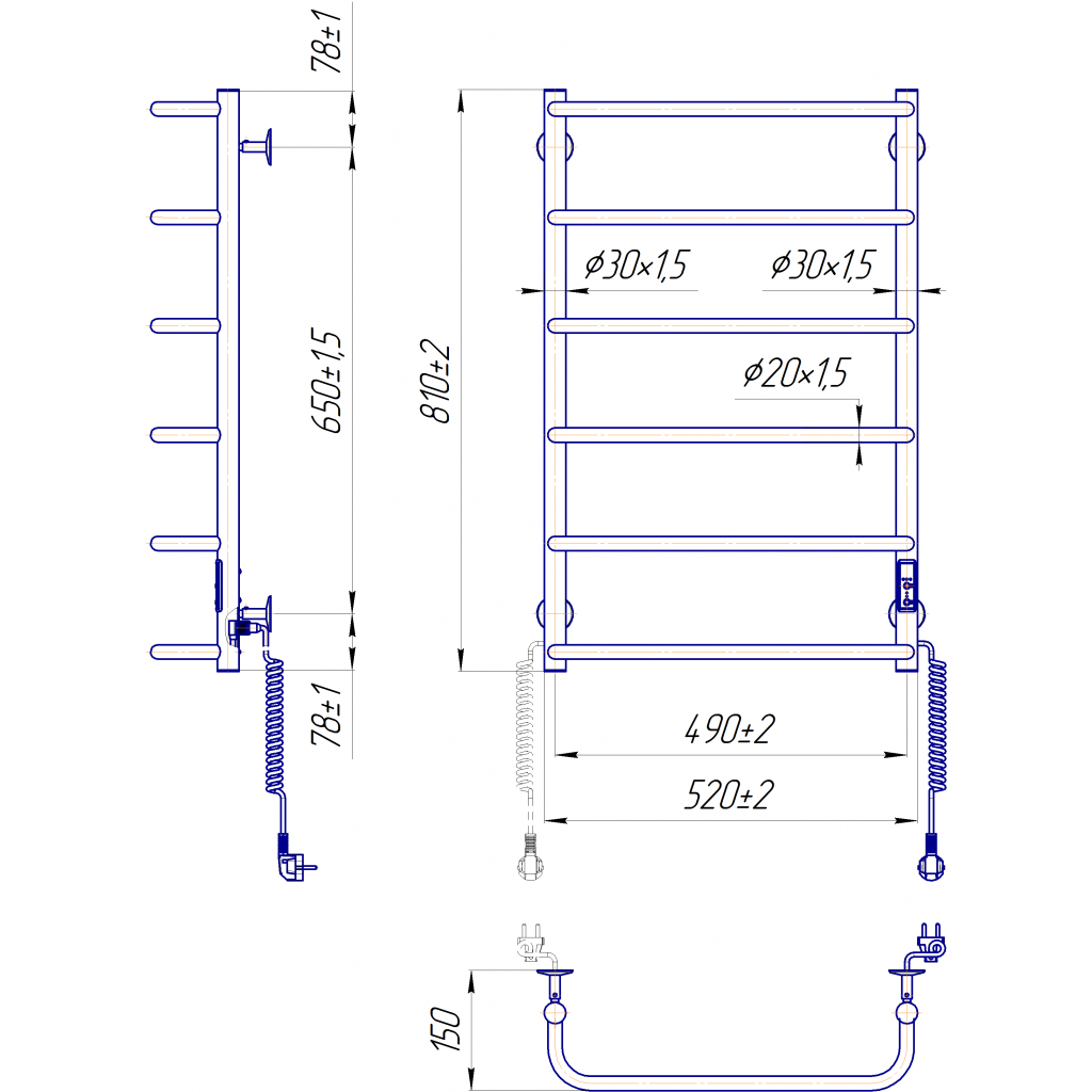 Електросушарка для рушників побутова Стандарт НР-І 800х530/150 TR К білий мат. Обладнана таймер-регулятором. Сумісна з комплектом прихованого підключення. Виготовлена з полірованої нержавіючої сталі. Варіанти покриття: полірована, сатин, чорний мат. Температурні режими таймер-регулятора: 40°С, 45°С, 50°С. Варіанти часу роботи: 3, 6 годин та постійний нагрів. Потужність 105.0 Вт. Гарантія - 20 років на корпус / 5 років на електричну частину/ 2 роки на покриття.
