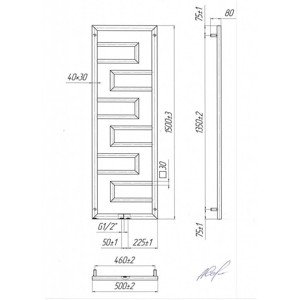 рушникосушка - 1шт. комплект кріплень - 1шт. кран Маєвського - 1 шт. заглушка - 1шт. паспорт - 1шт. коробка - 1шт.Розміри | 1500x500 |