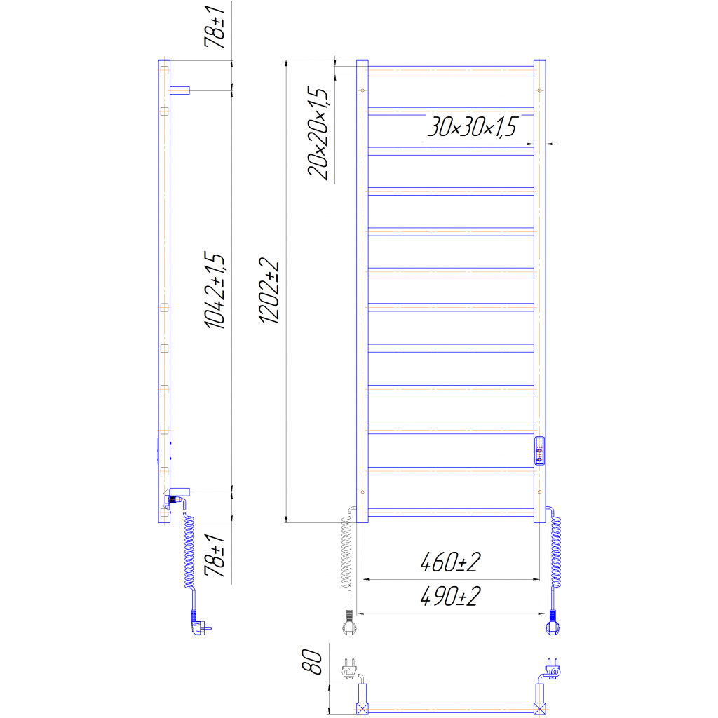 Електросушарка для рушників побутова Токіо-I 1200х500/80 TR К.