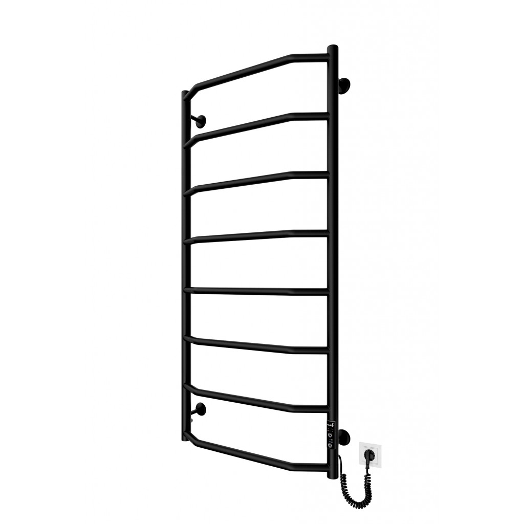 Електросушарка для рушників побутова Трапеція НР-І 1090х530/110 TR К чорний мат. Обладнана таймер-регулятором. Сумісна з комплектом прихованого підключення. Виготовлена з полірованої нержавіючої сталі. Варіанти покриття: полірована, сатин, чорний мат. Температурні режими таймер-регулятора: 40°С, 45°С, 50°С. Варіанти часу роботи: 3, 6 годин та постійний нагрів. Потужність 115.0 Вт. Гарантія - 20 років на корпус / 5 років на електричну частину/ 2 роки на покриття.