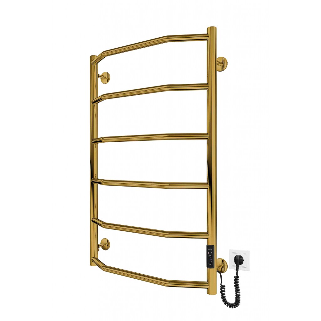 Електросушарка для рушників побутова Трапеція НР-І 800х530/110 TR К золото. Обладнана таймер-регулятором. Сумісна з комплектом прихованого підключення. Виготовлена з полірованої нержавіючої сталі. Варіанти покриття: полірована, сатин, чорний мат. Температурні режими таймер-регулятора: 40°С, 45°С, 50°С. Варіанти часу роботи: 3, 6 годин та постійний нагрів. Потужність 105.0 Вт. Гарантія - 20 років на корпус / 5 років на електричну частину/ 2 роки на покриття.