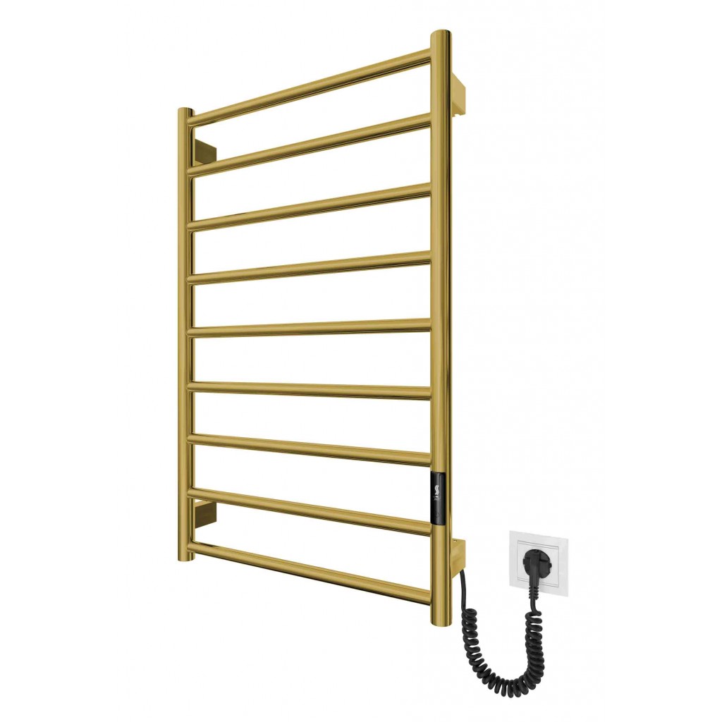 Електросушарка для рушників побутова Урбан-I 810x500/85 TR K 2.0 золото. Обладнана таймер-регулятором. Сумісна з комплектом прихованого підключення. Виготовлена з полірованої нержавіючої сталі. Варіанти покриття: полірована, сатин, чорний мат. Температурні режими таймер-регулятора: 40°С, 45°С, 50°С. Варіанти часу роботи: 3, 6 годин та постійний нагрів. Потужність 110.0 Вт. Гарантія - 20 років на корпус / 5 років на електричну частину/ 2 роки на покриття.